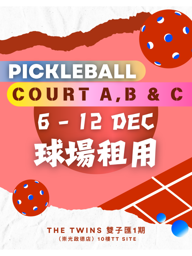 感謝各位熱烈支持,「匹克球嘉年華」課堂及租場时段反應踴躍已部分滿額,但請別失望~本次嘉年華將持續至 2026年1月1日,我們正陸續更新更多教練班與租場檔期,未來仍有大量名額開放,請務必定時留意官方消息:)