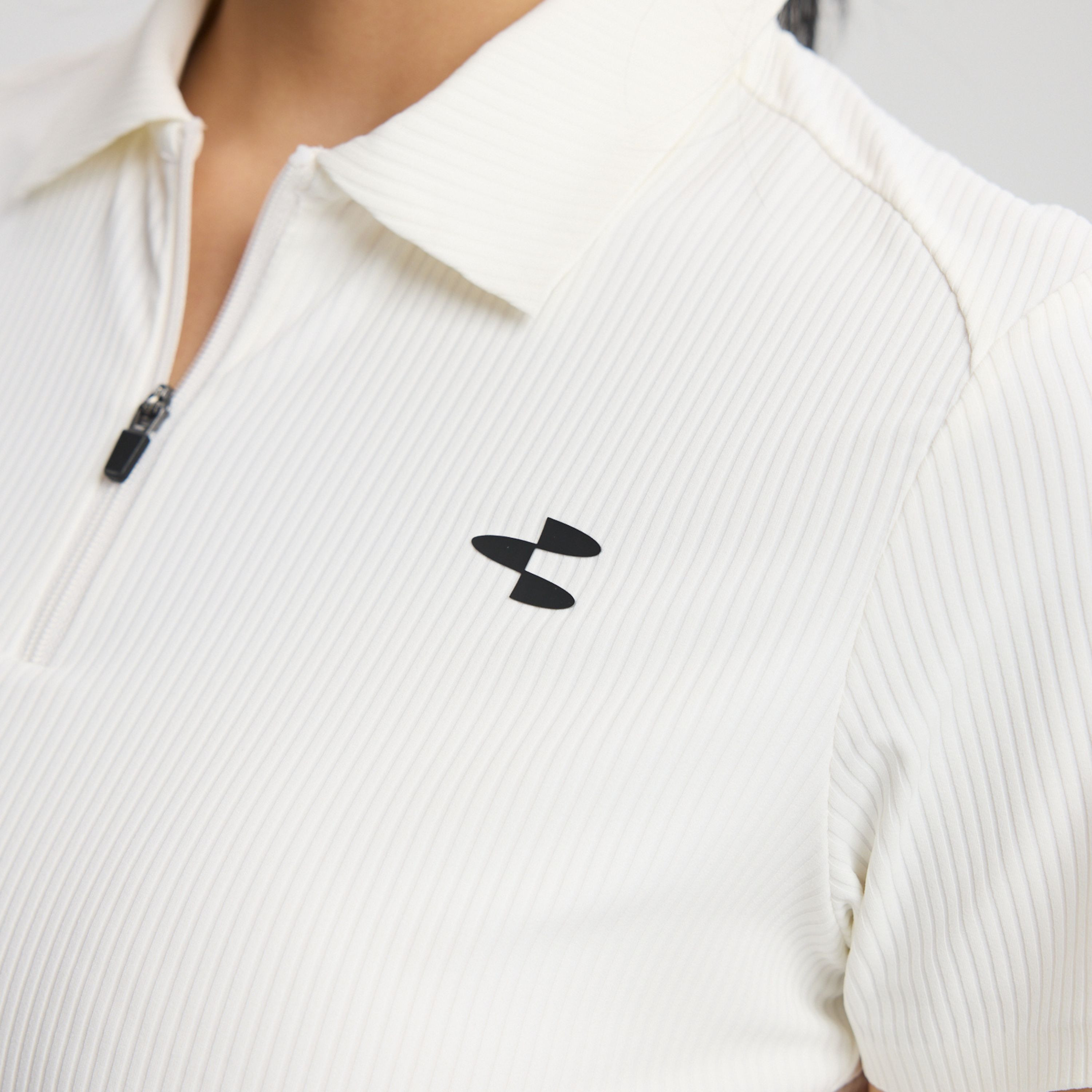 Polo領口搭配半拉鍊設計,可全拉立領打造俐落感,或半拉隨性呈現V領效果,一種單品多種風格。