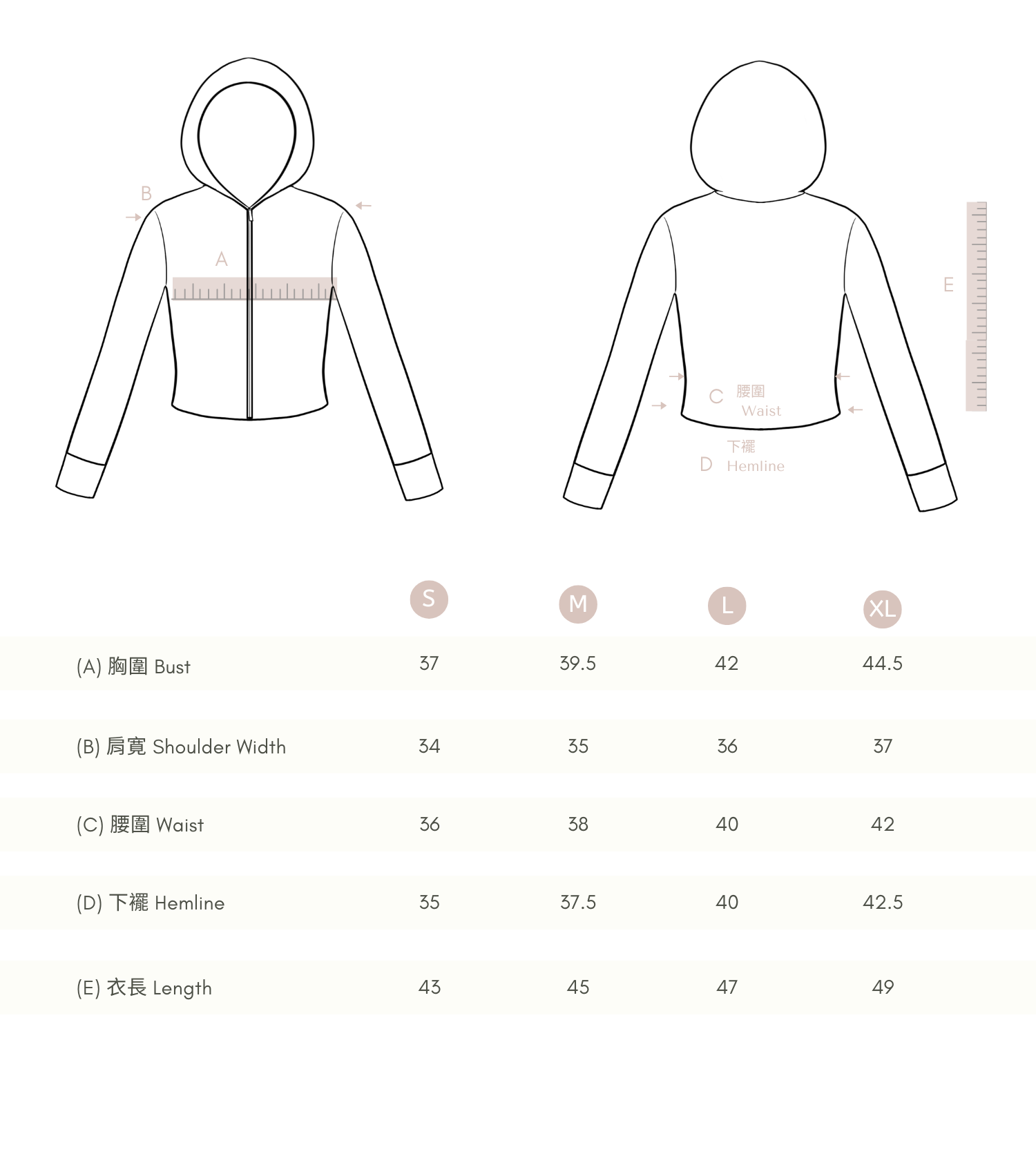 尺寸數據為平鋪量度,單位為公分(cm)。