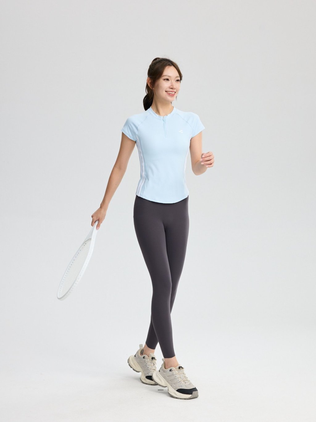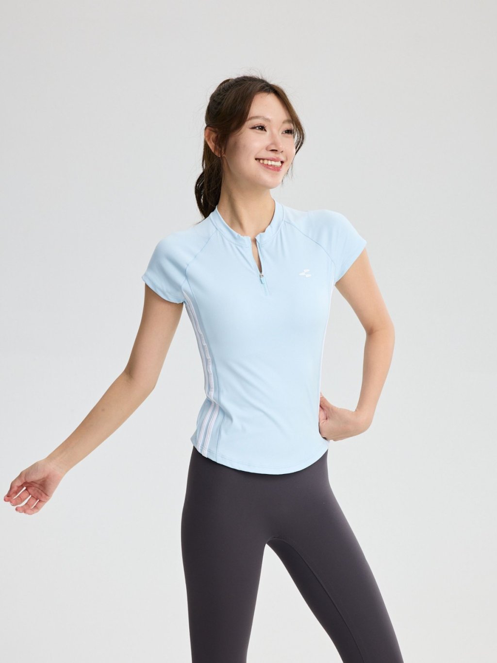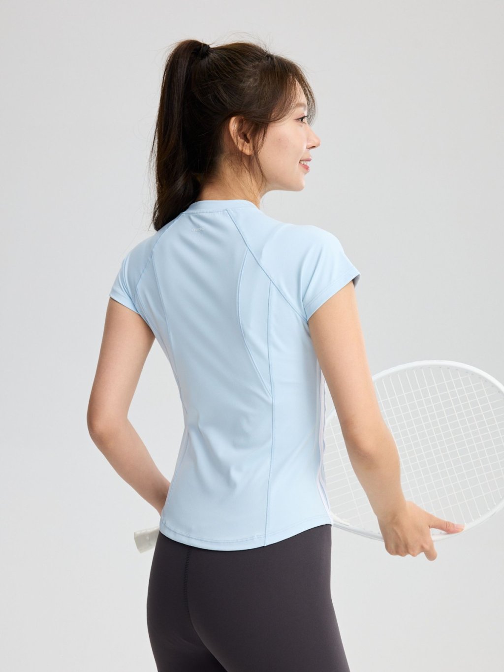 專為亞洲女性設計的微高領搭配蓋肩袖版型,完美修飾肩頸線條,打造俐落優雅的運動造型。