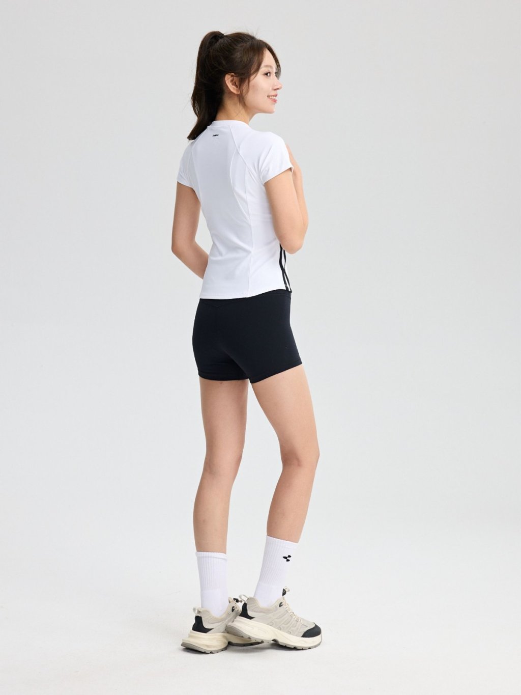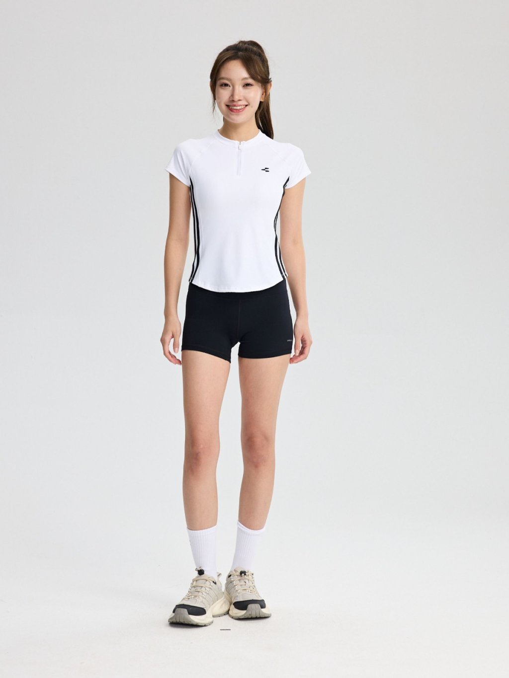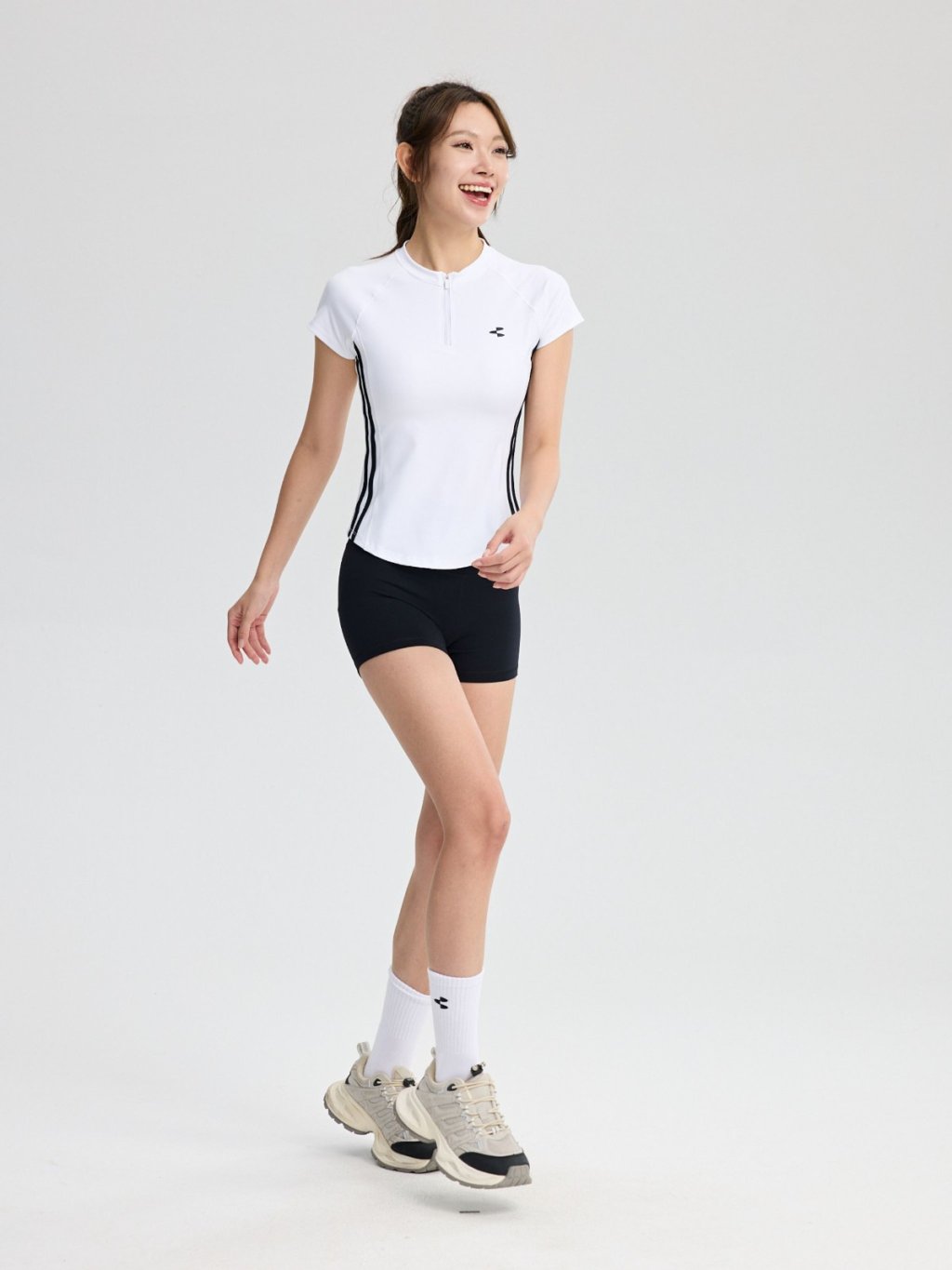專為亞洲女性設計的微高領搭配蓋肩袖版型,完美修飾肩頸線條,打造俐落優雅的運動造型。