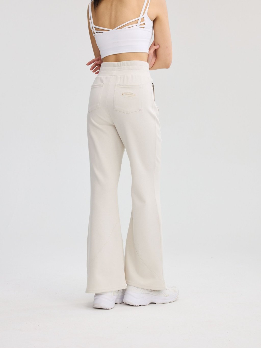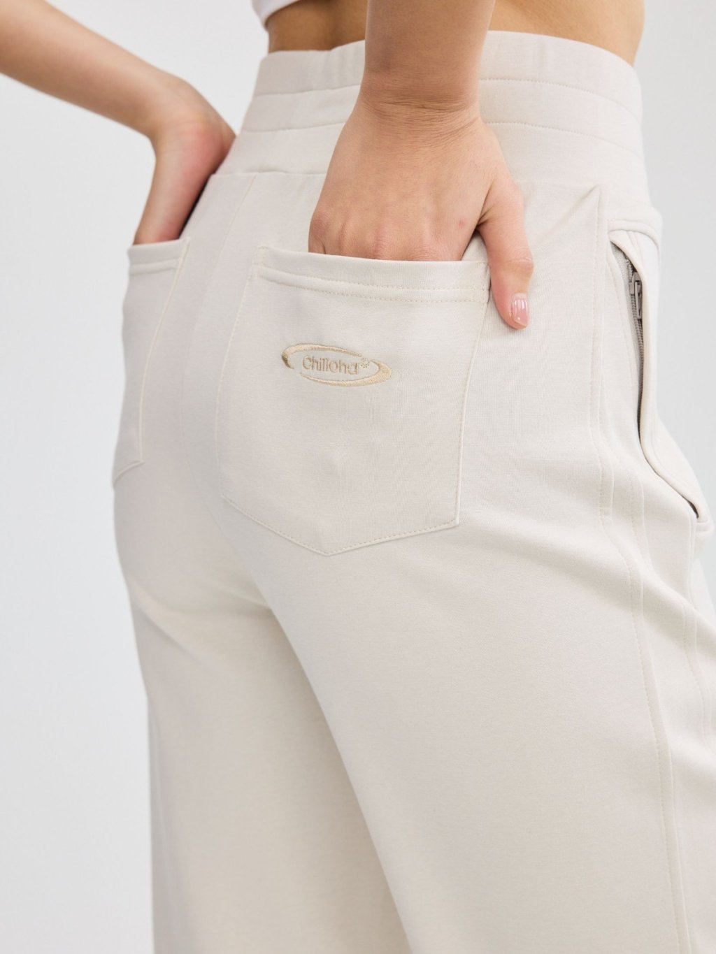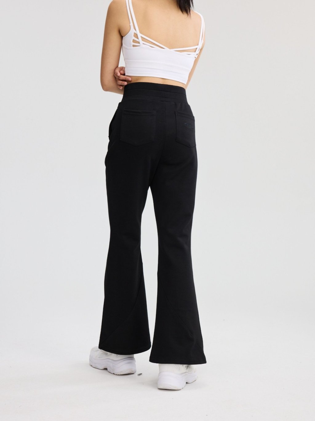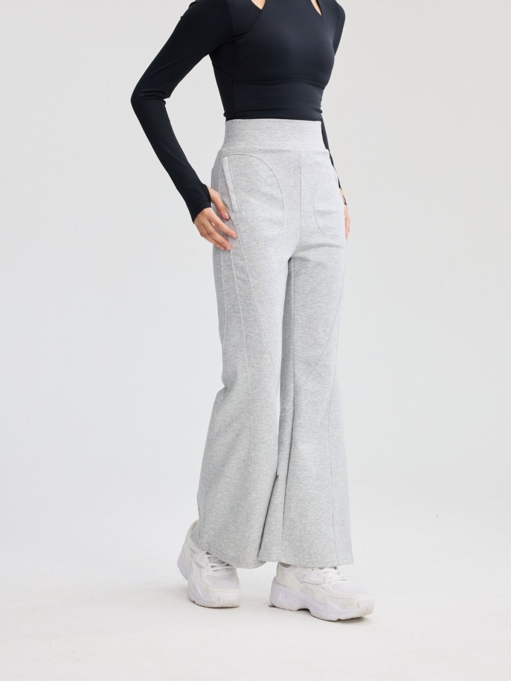 褲身綴以多道立體斜線車縫,不僅強化了設計感,更在視覺上有效修飾與拉長腿部線條。臀部創新的立體貼袋設計,巧妙提升臀形,展現豐盈翹挺的視覺效果。
