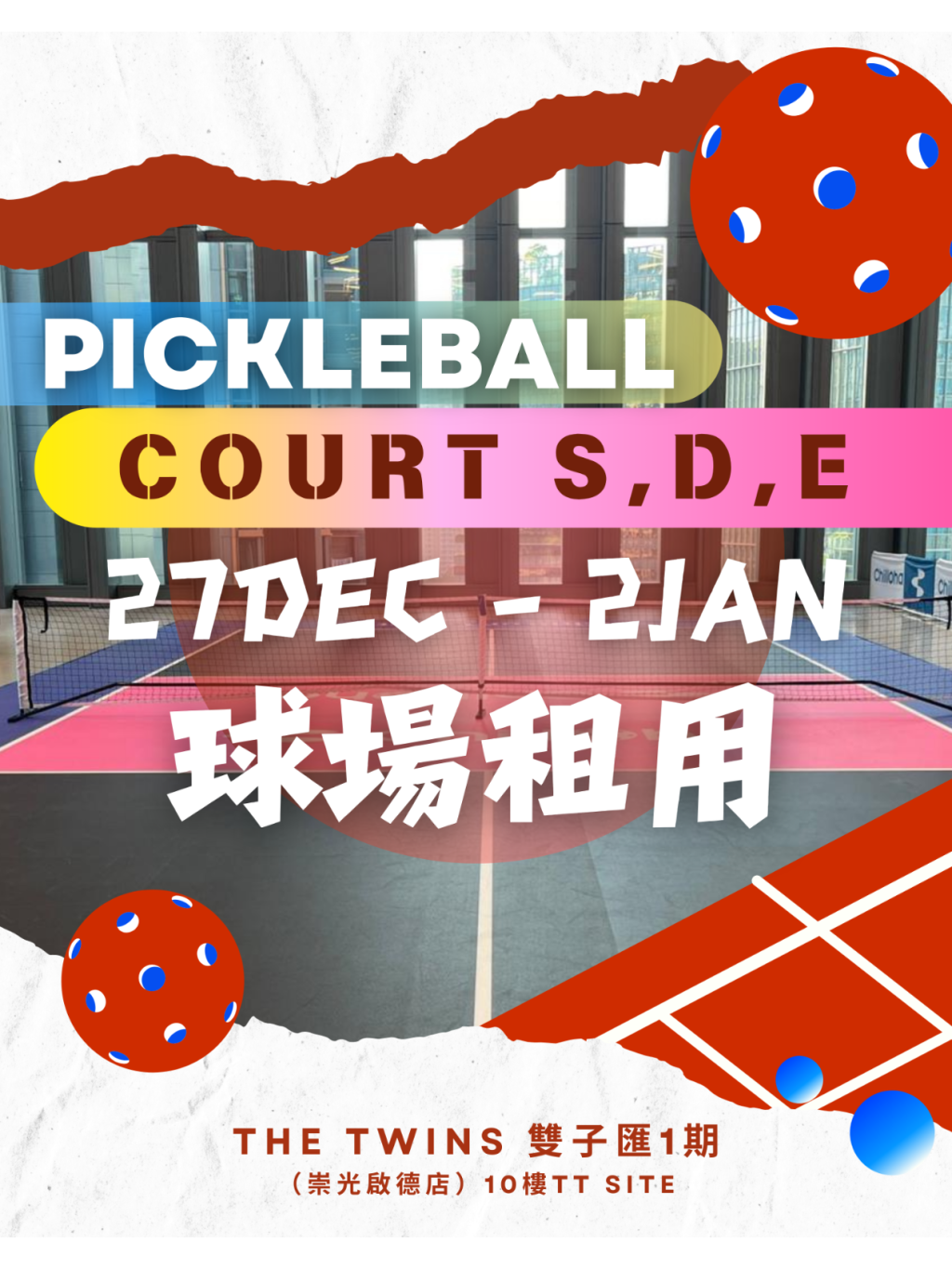 Court S,D,E 匹克球場租用|60分鐘 27Dec - 2Jan
